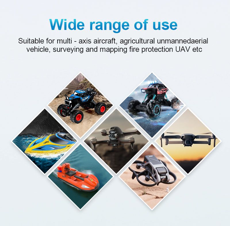 ແບບຫຸ່ນຍົນແລະຮູບແບບ RC: ແຫຼ່ງພະລັງງານທີ່ຫນ້າເຊື່ອຖືສໍາລັບຫຸ່ນຍົນ, ລົດ RC, ເຮືອ, ແລະເຮືອບິນ.